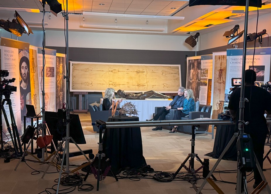 The exhibit was the setting for the Trinity Broadcasting Network (TBN) to record a special episode of the “Praise” show and interview speakers for an upcoming 5-part docuseries about the Shroud. This updated exhibit debuted at the 2024 National Eucharistic Congress in Indianapolis, IN.