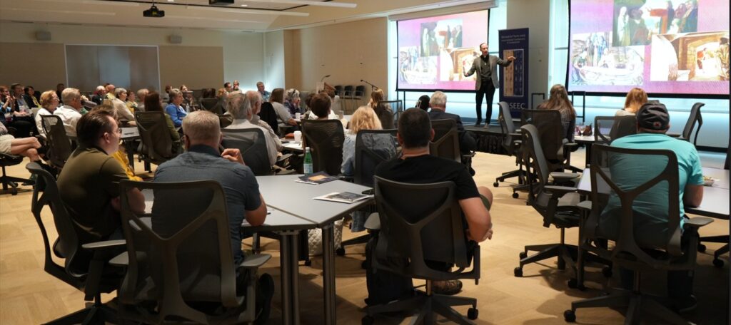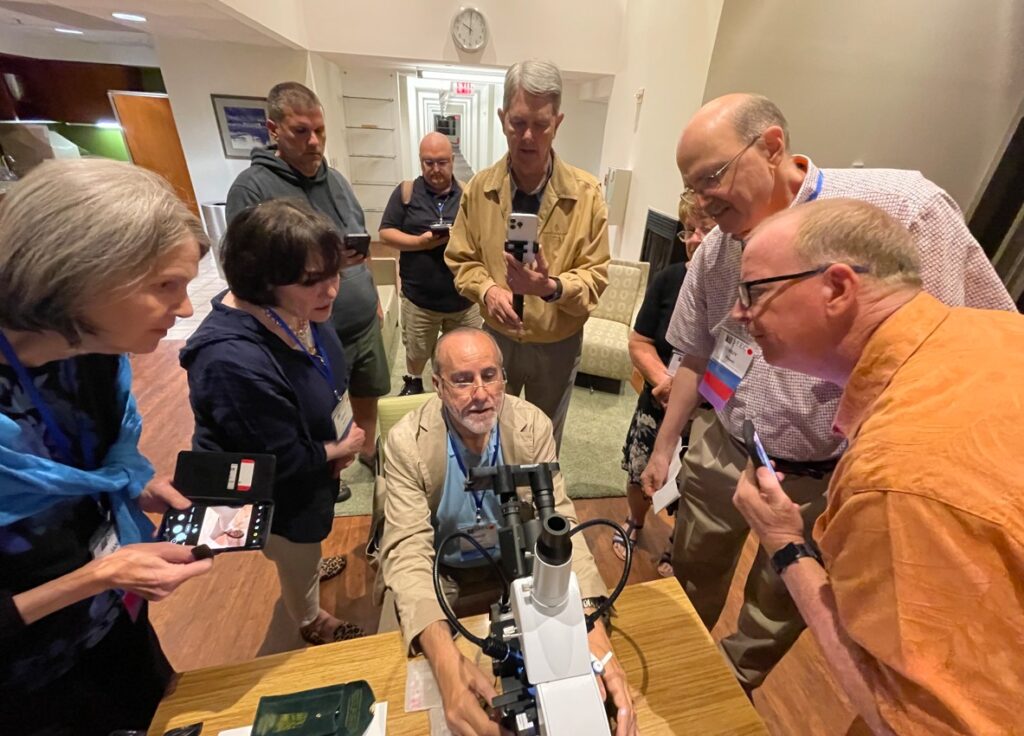 Newsletter/Blog Dr. Giulio Fanti, Teddi Pappas and others view sides of Shroud blood samples. Fr. Andrew Dalton speaks to a group at the conference.